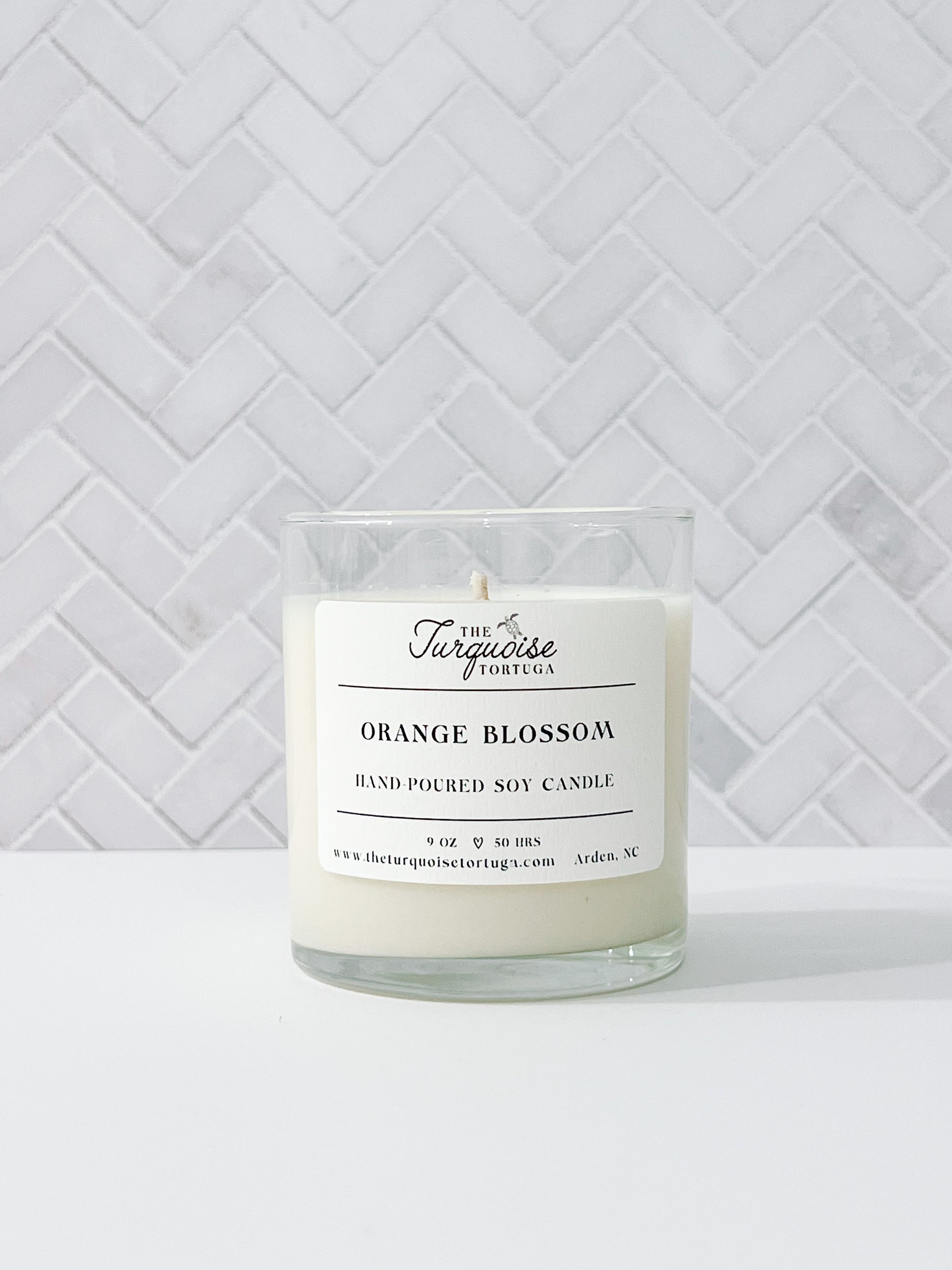 This orange blossom scented candle is made with 100% soy wax grown in the USA. Soy wax is a natural and renewable resource. Our wicks are made of cotton without lead or zinc. Each candle comes with a bamboo lid.